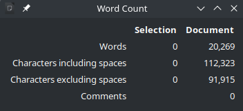 decent progress. I am happy with where it’s all at, and with my pace of writing. The real victory lies in the daily habit that I am surprised I kept up for this long. It’s … easier than anticipated, which is maddening.